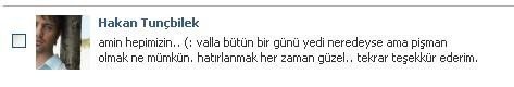 Mesajları Sil’e tıkladıktan sonra aşağıdaki gibi mesajların yanında kutucuklar geliyor. Silmek istediğiniz mesajın kutucuğuna tik atın. ( Hakan Abimin affına sığınaraktan onun mesajını bu konuda kullanıyorum, şarkıları kadar sıcakkanlıdır kendisi bir şey demeyeceğini düşündüğüm için mesajını kullandım 🙂 )